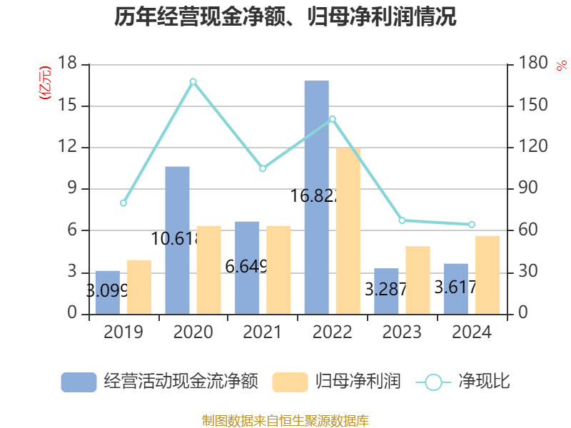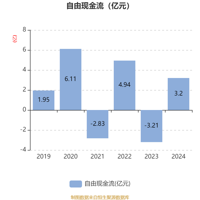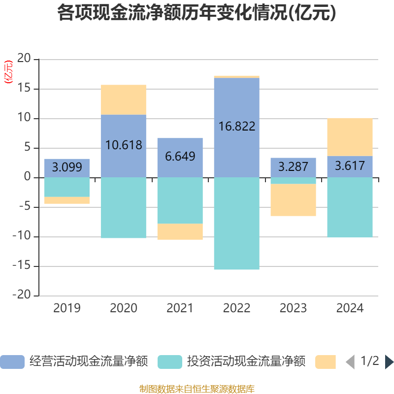 截至2024年,公司经营活动现金流净额为3.62亿元,同比增长10.05%;筹资活动现金流净额6.39亿元,同比增加11.81亿元;投资活动现金流净额-10.17亿元,上年同期为-1.13亿元。