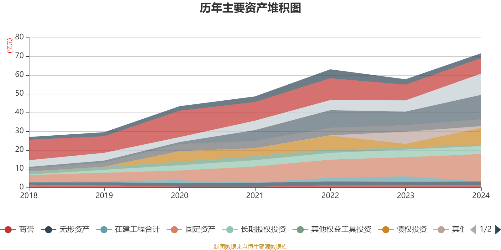 资产重大变化方面,截至2024年末,公司其他流动资产较上年末减少84.76%,占公司总资产比重下降9.88个百分点;债权投资较上年末增加312.29%,占公司总资产比重上升8.62个百分点;交易性金融资产合计较上年末增加80.81%,占公司总资产比重上升5.74个百分点;应收票据及应收账款较上年末增加88.39%,占公司总资产比重上升5.4个百分点。