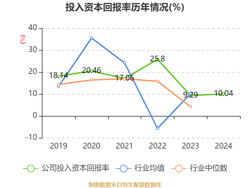 数据显示,2024年公司加权平均净资产收益率为10.88%,较上年同期上升0.02个百分点。公司2024年投入资本回报率为10.04%,较上年同期上升0.75个百分点。