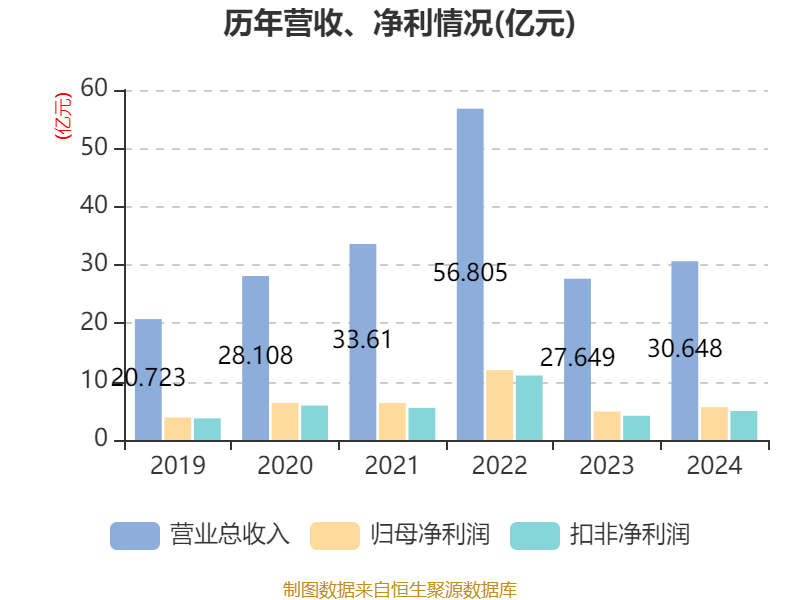 中证智能财讯万孚生物(300482)4月10日披露2024年年度报告。2024年,公司实现营业总收入30.65亿元,同比增长10.85%;归母净利润5.62亿元,同比增长15.18%;扣非净利润4.97亿元,同比增长19.90%;经营活动产生的现金流量净额为3.62亿元,同比增长10.05%;报告期内,万孚生物基本每股收益为1.21元,加权平均净资产收益率为10.88%。公司2024年度分配预案为:拟向全体股东每10股派现4元(含税)。