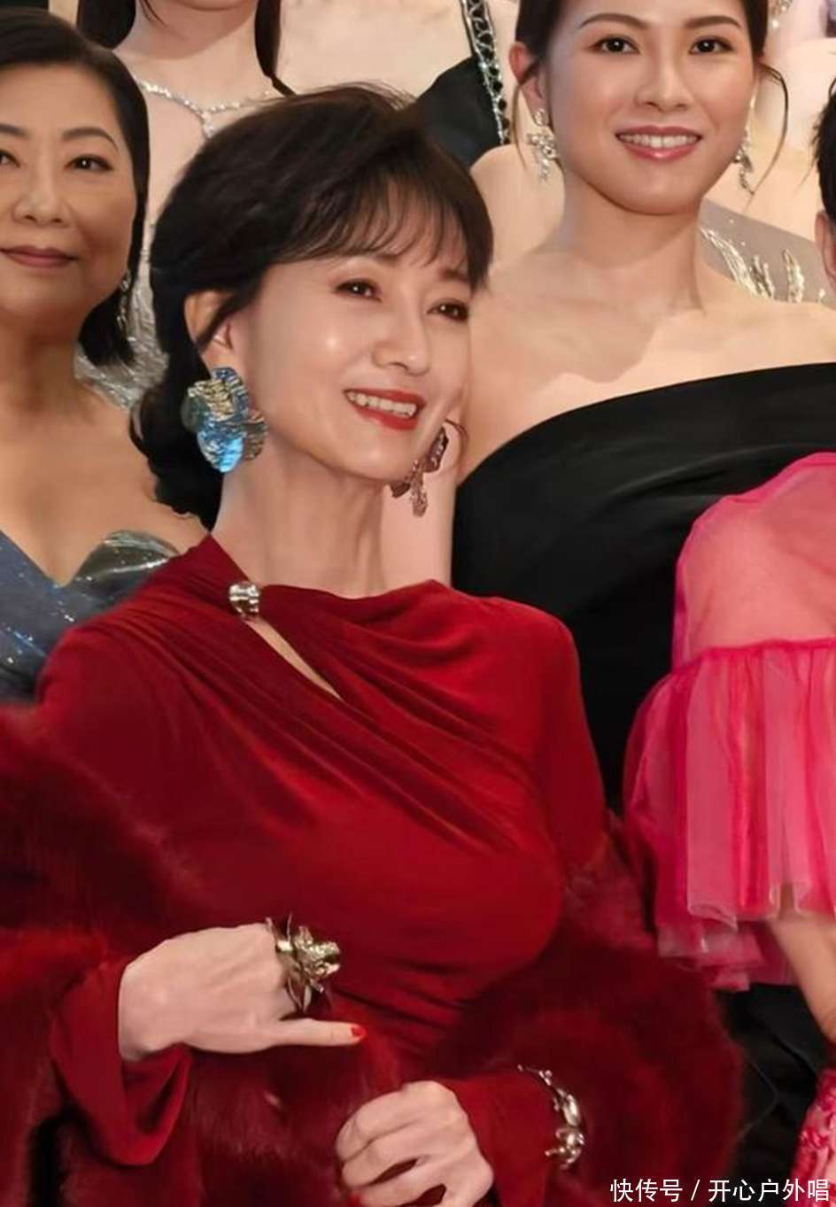 咱先说说这晚会的场面,那真叫一个星光熠熠啊!个个港姐都跟从画里走出来的仙女似的,盛装打扮,那叫一个亮眼。要说这里头最出彩的,还得是首届港姐第四名、现年71岁的赵雅芝。哎呀妈呀,她一出场,那可真是闪耀全场呐!你瞧她,扎着漂亮的发型,就像那精心雕琢的花朵一般;身穿一袭红色丝绒长裙,外搭毛茸茸外套,那气质,杠杠的!再看那耳坠和大钻戒,闪得人眼睛都花了。